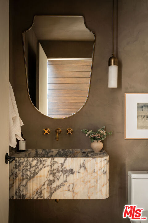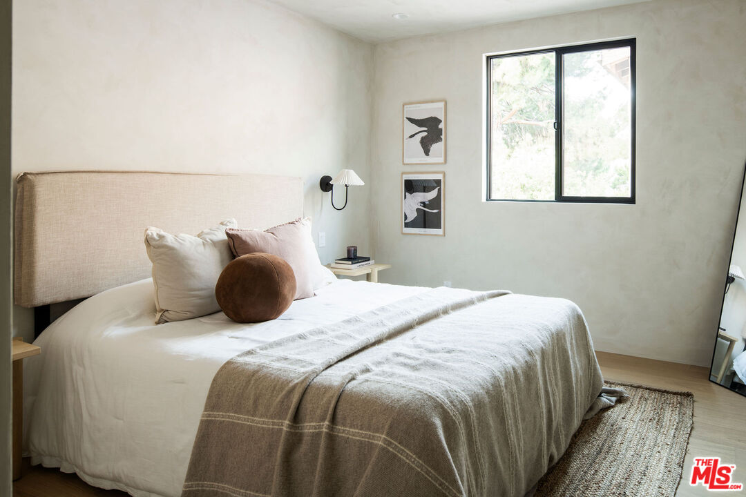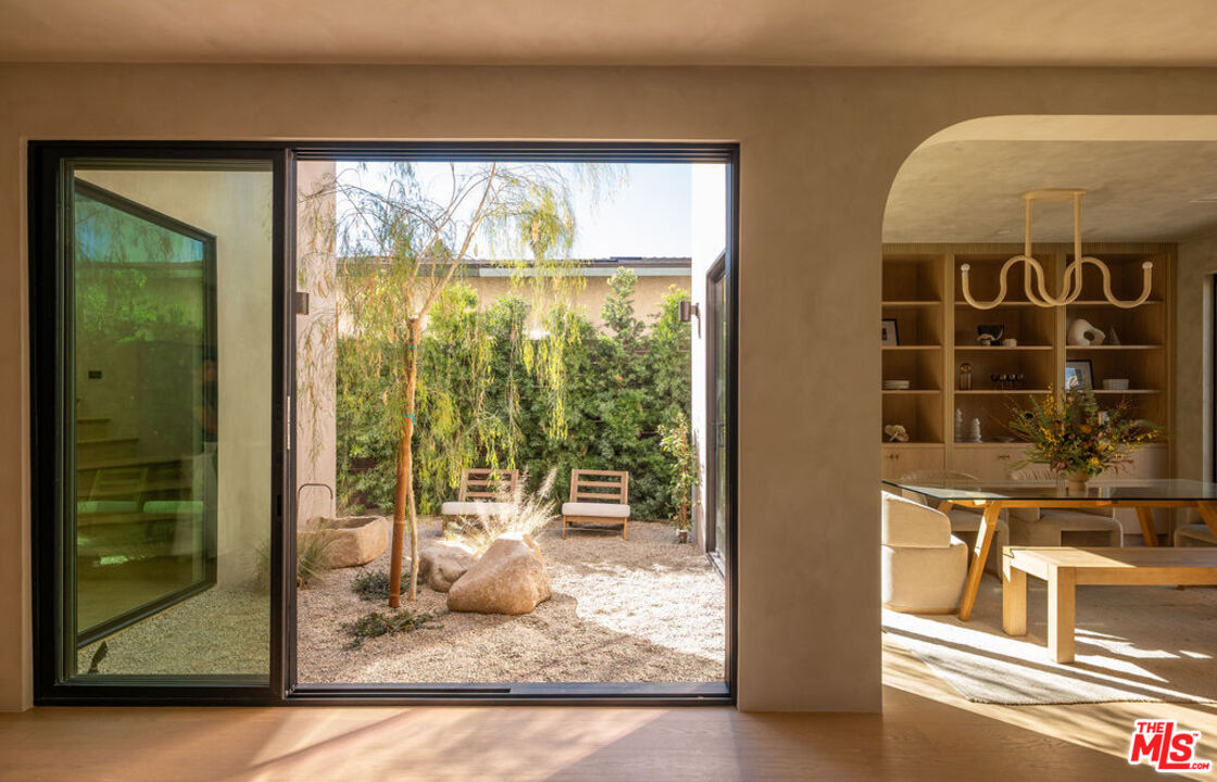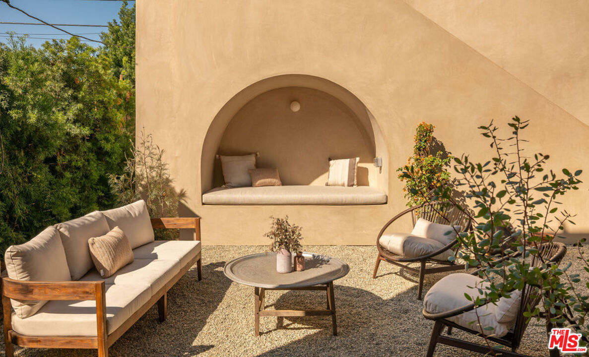 Newly built in 2025, this architectural Frogtown compound embodies the best of modern California living - where high design meets comfort, privacy, and functionality. The gated property includes two stunning new residences: a 3 bed, 2.5 bath two-story main home with attached 2-car garage and a sophisticated 1 bed, 1 bath ADU with its own rooftop deck and outdoor kitchen. Each home boasts impeccable designer finishes with lush landscaping. Together, they form a serene retreat in one of LA's most dynamic and creative neighborhoods. Past the beautifully landscaped front yard, the travertine-clad main home invites you through a graceful arched entryway into a space that feels both sculptural and warm. Just beyond the entry hall, a dramatic curved plaster staircase sweeps upward to the second level. An atrium with its own limestone fountain and a Weeping Acacia tree is viewable through expansive glass walls, filling the home with light and tranquility. The powder room, conveniently located near the front door, features Roman clay walls and a Calacutta Viola marble sink. The open-concept main level offers a seamless flow for entertaining and everyday living. The living room features a gas fireplace flanked by custom, arched built-ins, while the adjoining dining area is anchored by stunning, floor-to-ceiling built-in buffet shelving and encircled by voluminous Milgard sliding doors that open seamlessly to the lush backyard. At the heart of the home, the designer kitchen showcases a striking rectangular island clad in fluted white oak, paired with honed Calacatta marble countertops, a paneled dishwasher, and premium THOR appliances - including a six-burner range and stainless steel refrigerator. The kitchen features hidden storage behind sliding cabinet pocket doors, and the built-in microwave tucked within the pantry adds sleek convenience. All three bedrooms are upstairs, each with new Milgard windows and limewash walls. The two secondary bedrooms share a stylish bathroom featuring a bathtub and shower, while the nearby laundry closet provides everyday convenience. The primary suite is a peaceful sanctuary featuring limewash walls, a large walk-in closet concealed by wood-fluted doors, and a private terrace with built-in seating that overlooks the backyard. The spa-inspired en-suite bath tiled in Tundra marble features a soaking tub, a large standing shower, a dual-sink vanity, a water closet, and windows that bathe the space in natural light. At the rear of the property, the 1 bed, 1 bath all-electric guest house (ADU) mirrors the main home's style and craftsmanship. The open living space features warm and inviting engineered oak wood floors, limewash walls with a custom-built seating nook, and a full kitchen with beautifully unique Ceppo Grey marble countertops. A tranquil bedroom with dark limewash walls, a stunning bathroom with limestone tiles, and a stacked laundry in a hallway closet make it a fully self-contained space. Outside, the ADU's private rooftop deck is perfect for sunset gatherings, with bar-top seating and built-in BBQ, beverage refrigerator, and sink, creating a true hideaway for guests or an ideal live-work retreat. The backyard is a lush oasis designed for dining and relaxation, featuring a built-in arched seating bench and romantic greenery throughout. Additional highlights include a finished two-car garage with EV outlet, and all-new systems, including roof, foundation, HVAC, plumbing, sewer line, and electrical. Ideally situated in Frogtown, just steps from the LA River bike path, this exceptional compound is surrounded by the area's most beloved local spots, including Wax Paper, Lingua Franca, Loreto, Salazar, and Spoke Bicycle Cafe. Whether you're looking for a design-forward sanctuary or a flexible investment opportunity, this modern compound offers the best of both worlds: style, sophistication, and serenity in one of LA's most sought-after neighborhoods.