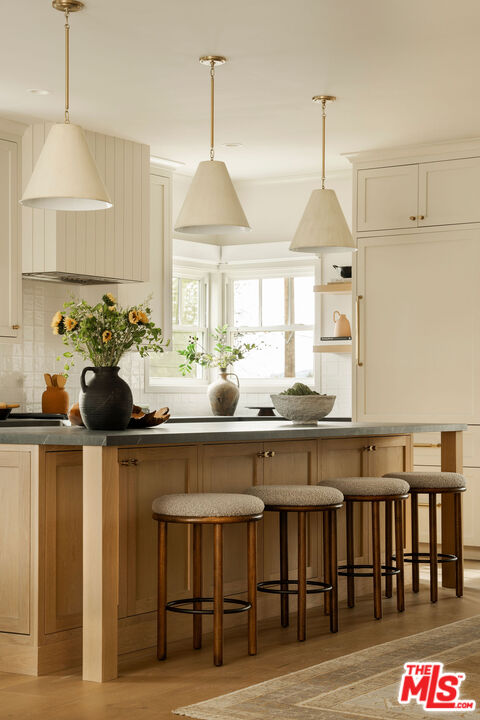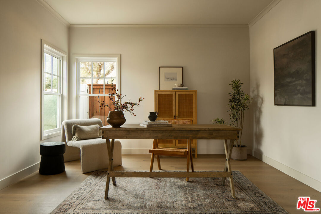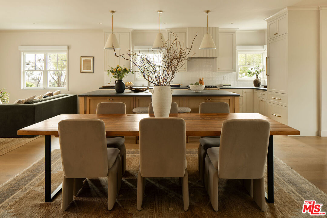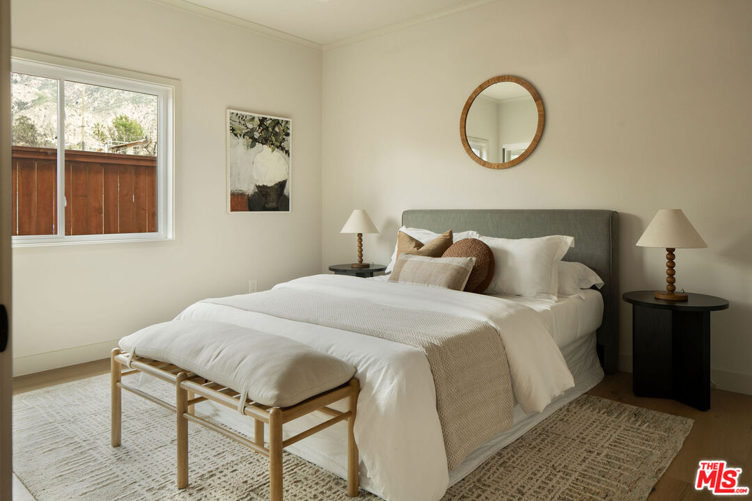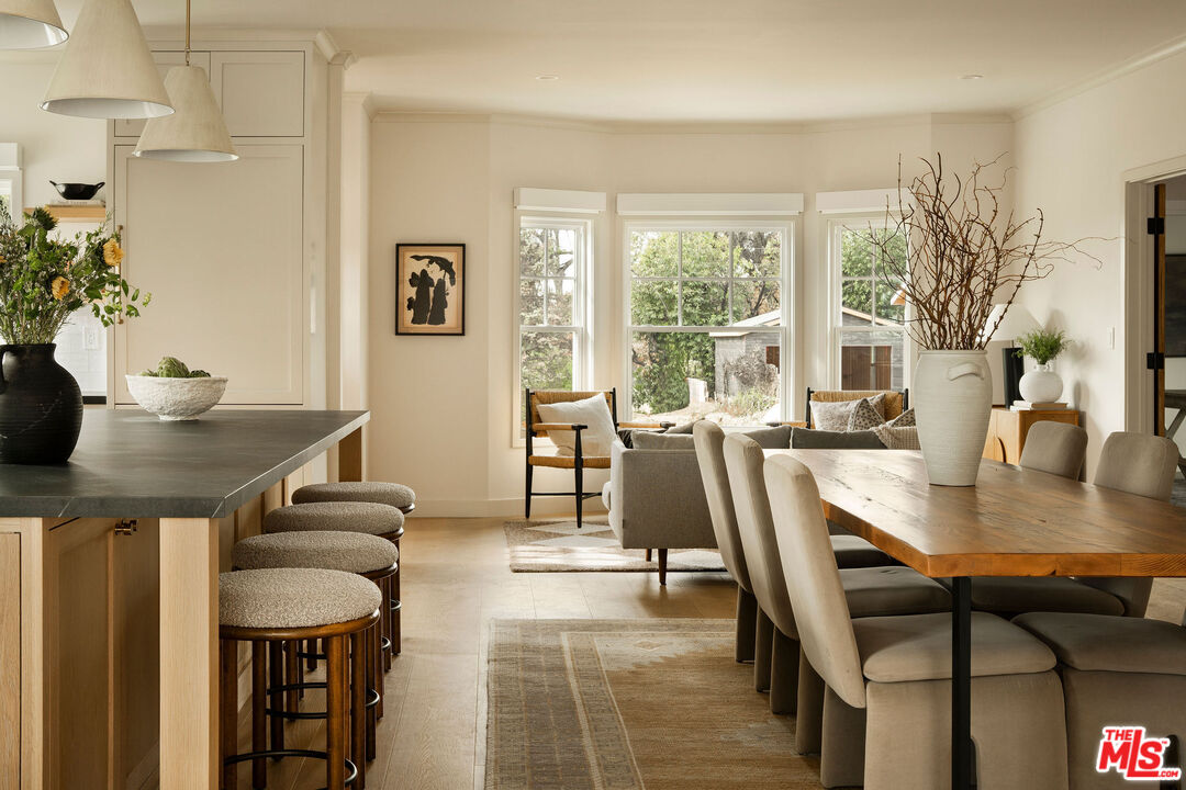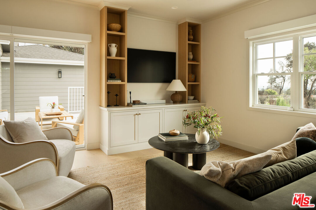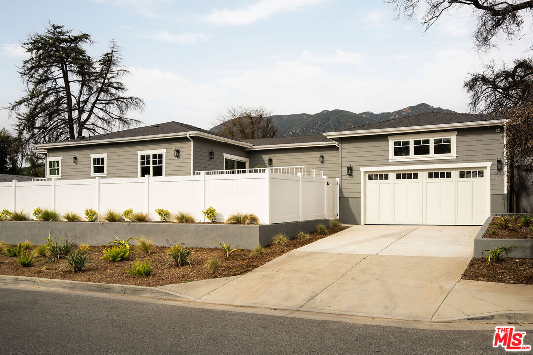 Originally built in 1948 and thoughtfully rebuilt in 2025, this beautiful 4 bedroom, 3 bathroom Altadena home spans approximately 2,110 square feet and blends classic California charm with modern design and resilience. Reconstructed on its original footprint and foundation following the Eaton Fire, the residence was developed with a deep commitment to craftsmanship, safety, and longevity, resulting in a home that feels both grounded in its history and entirely renewed. A newly landscaped front yard welcomes you inside to a bright, open-concept main living area designed for effortless everyday living. At the front of the home, a charming sitting area with a bay window captures beautiful natural light. The showstopping kitchen sits at the center, appointed with a large island, porcelain countertops, custom soft-close cabinetry, designer lighting, and a full Thermador appliance suite including a range and oven, double-drawer refrigerator, dishwasher, undercounter microwave, and beverage drawer. Just beyond, the family room provides a relaxed gathering space with easy flow to the outdoors. Off the main living area, the first bedroom with French doors offers flexibility as a guest room or office, with a full bath nearby featuring curated tilework. Two additional bedrooms are complemented by custom hallway built-ins and a washer and dryer conveniently located in a sizeable hallway closet near the bedrooms, complete with shelving for additional storage. Privately positioned at the rear of the home, the primary suite offers a serene retreat with a walk-in closet and a spa-like bath featuring a frameless glass shower, custom cabinetry, and designer fixtures. A sliding door opens to its own patio, creating an effortless indoor-outdoor connection. Outdoor living is thoughtfully designed, featuring an elevated patio for al fresco dining and a grassy side yard surrounded by custom landscaping and hardscaping with underground irrigation. Modern upgrades include a Control4 smart home system with Lutron lighting, Sonos audio, central iPad control, security cameras, Starlink internet (two years prepaid), new HVAC, a tankless water heater, upgraded electrical and plumbing, underground power lines, and solar panels. Fire-conscious construction- complete with a spark-resistant composition roof and concrete composite siding- adds peace of mind, while a high-ceiling two-car garage completes the property. Located in Altadena near beloved local restaurants, coffee shops, and neighborhood markets, with easy access to hiking trails and the scenic San Gabriel foothills, this thoughtfully rebuilt residence offers modern comfort, elevated design, and a fresh chapter in a cherished community.