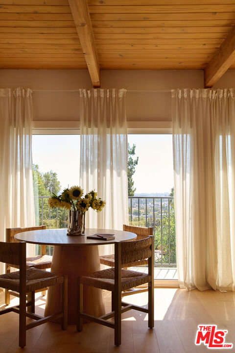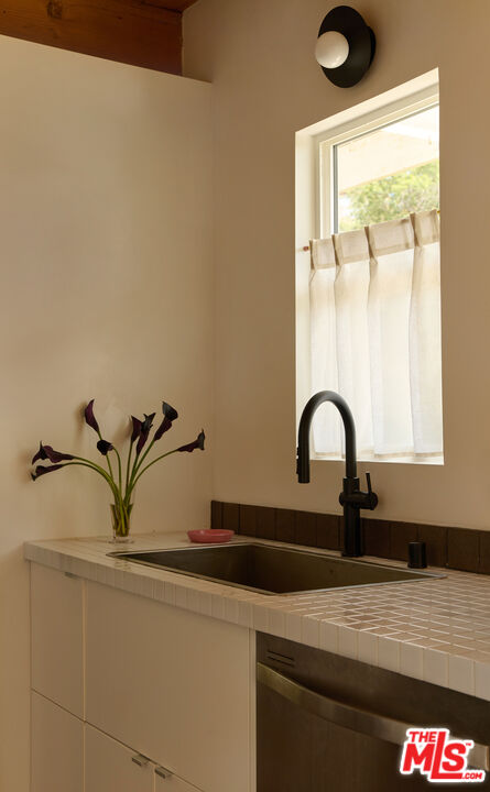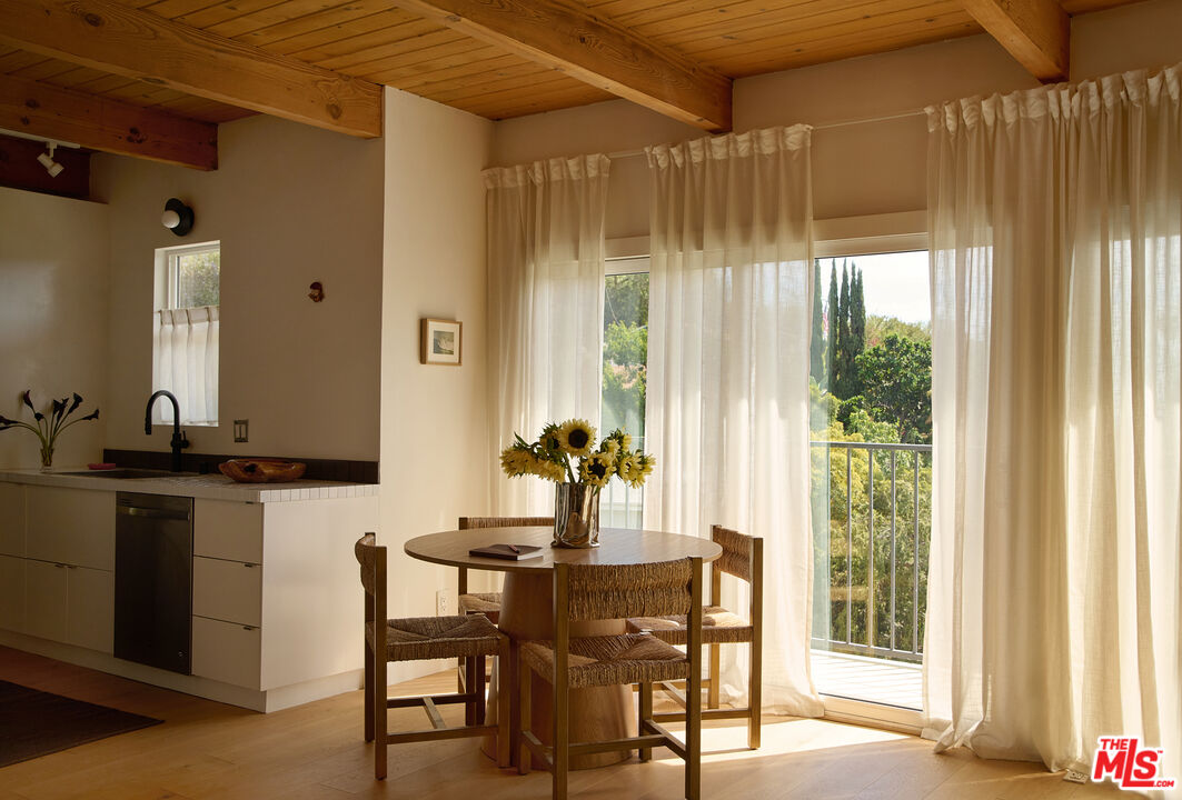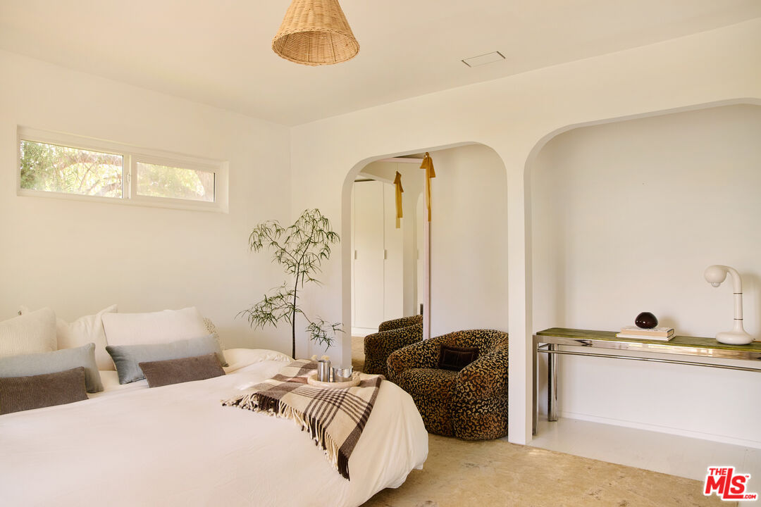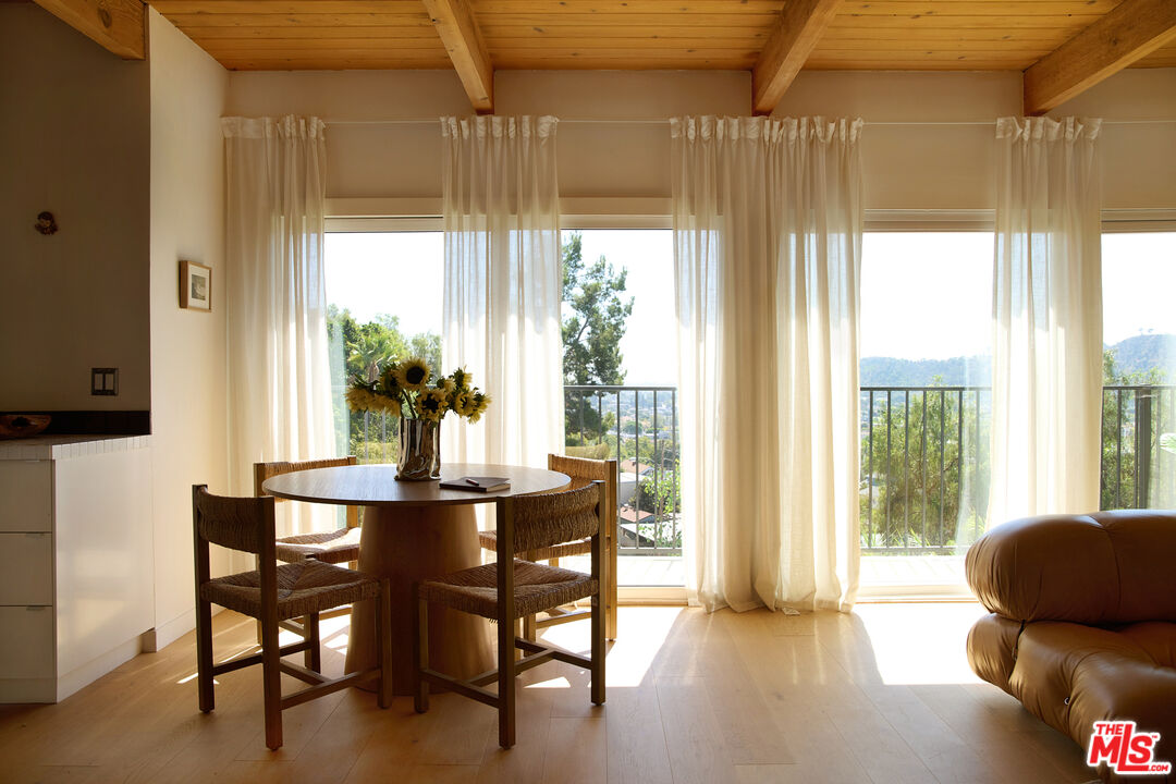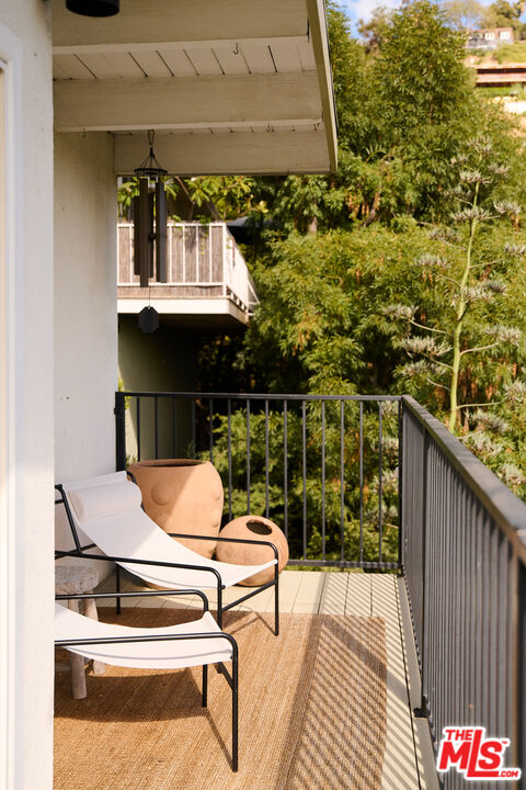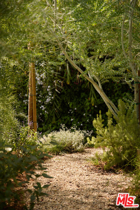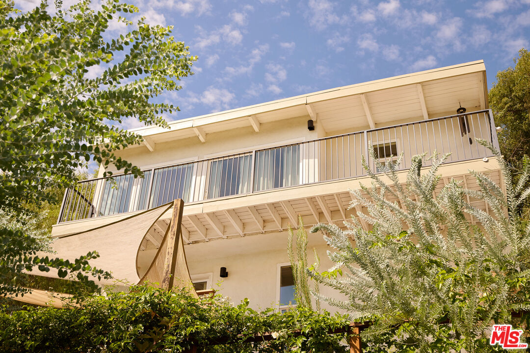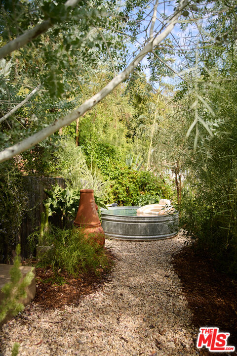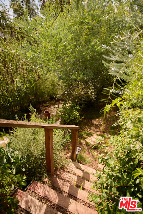 Perched in the foothills of Mount Washington, this striking 2 bedroom, 2 bathroom mid-century modern hillside home offers high design, city views, and a dreamy, perfectly landscaped yard, a true tranquil refuge. The home offers a newly designed and renovated kitchen and bathrooms, featuring chic matte tile, Eny Lee Parker light fixtures, and Phylrich showerhead, faucet, and fixtures. The expertly curated, expansive backyard offers a series of intimate vignettes for relaxation and entertaining, including built-in seating, an outdoor dining area, a dipping tub under a canopy of mature eucalyptus trees, olive trees, and an abundance of fruit trees. The main level opens to an airy, open-concept layout defined by vaulted wood-beamed ceilings, clerestory windows, and a dramatic wall of glass. The freshly reimagined kitchen with its custom cabinetry, tile countertops, and designer lighting anchors the living space and provides a dining area flanked by floor-to-ceiling windows. An upper-level patio extends off the kitchen, allowing a serene space to soak in the views with morning coffee. A fully renovated main floor bathroom features refined tilework and sleek fixtures, completing a level that feels both warm and sophisticated. The lower level features two spacious bedrooms, each with ample closet space, and a charming outdoor patio located off the primary bedroom. The shared bathroom has generous proportions, modern finishes, including a Kelly Wearstler light fixture, stone countertop, and Kohler hardware. Step outside into a garden that feels like its own hidden world, a lush, layered landscape filled with mature fruit trees, towering eucalyptus and acacia, and meandering passion fruit and star jasmine vines that drape with effortless beauty. Multiple seating areas are tucked throughout, inviting quiet mornings with coffee or long afternoons beneath the trees. A flagstone pathway winds through the designer-curated California and Australian native greenery, leading to a 10-foot filtered cowboy tub set perfectly for stargazing nights, while expansive decks and shaded nooks offer space to dine, gather, or simply breathe it all in. It's a rare and romantic outdoor sanctuary alive with texture, scent, and soul. This Mt. Washington residence offers an elevated lifestyle in one of Northeast LA's most sought-after enclaves. Enjoy easy access to the best of the vibrant Eastside culinary scene, including Barra Santos, Wife & Somm, Dunsmor, Little Ripper, and The Grant. Begin the day with coffee from Loquat before exploring nearby Moon Canyon Park or the trails of Elyria Canyon. A home of striking form and function, it embodies the ideal fusion of modern design, California hillside living, and outdoor splendor.