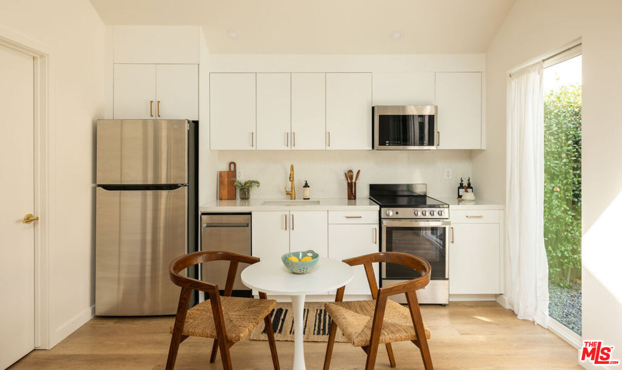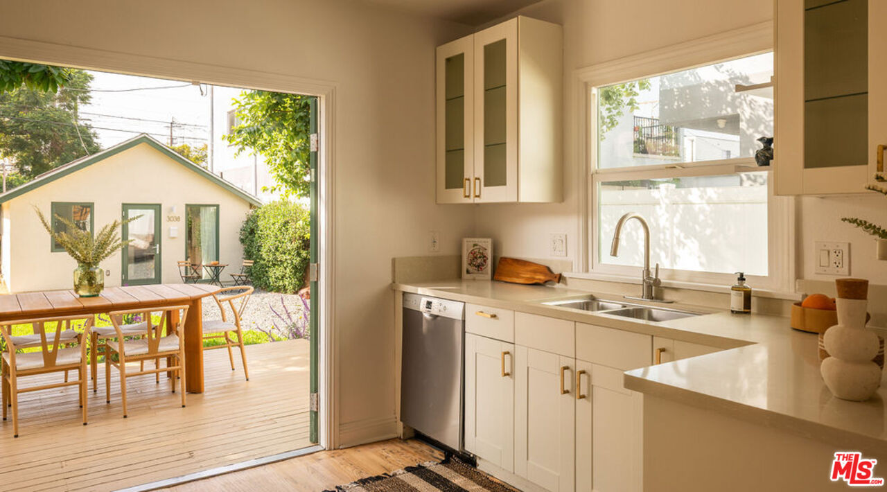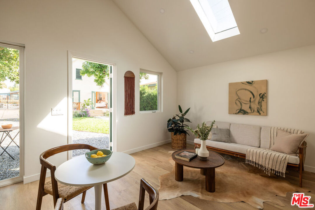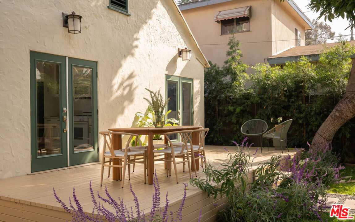 Private and ideally located, this Atwater Village compound offers three distinct residences: a front 2 bedroom, 1.5 bathroom main house, a detached 1 bedroom, 1 bathroom ADU, and an additional freestanding studio - all on an expansive and expertly landscaped 6,599 sq. ft. lot. The front home is a striking 1928 Tudor residence, offering a thoughtful floorplan with elevated finishings. Set back from the street, a newly landscaped front yard leads to the welcoming front patio. Inside, recently refinished original hardwood floors run throughout, grounding the home in rich, historic patina. The bright and airy living room is anchored by an architecturally expressive fireplace and flows into the generous dining area, where custom built-in cabinetry creates a natural gathering space. Sight lines extend through the kitchen and out to the backyard, establishing an effortless connection between everyday life and the outdoors. The kitchen is both functional and inviting, with newer appliances and natural wood cabinetry. Down the hall, two comfortable bedrooms sit on opposite ends, including an ensuite primary bedroom with its own access to the deck. A beautifully updated half bath sits conveniently off the main hall. French doors from the kitchen open to an expansive 250 sq. ft. deck, which flows to the home's generous backyard planted with mature fruit trees avocado, guava, kumquat, Meyer lemon, loquat, and prickly pear - a true California landscape. The newly constructed ADU offers a fully independent 1 bedroom, 1 bathroom dwelling with modern finishings, natural light, a full kitchen, and its own private entrance - ideal for guests, extended family, or rental income. An additional detached studio sits just behind the ADU, offering a flexible space suitable for a gym, home office, or recreation room, thereby adding meaningful versatility to the property. Improvements have been completed steadily and thoughtfully over the years - refreshed bathrooms, new HVAC and Nest controls, exterior and interior paint, refinishing of original wood floors, a whole-house Culligan water filtration system, a newly added archway, and retroactive permitting of the detached studio - all adding layers of comfort and long-term value. Ideally situated in the heart of Atwater Village, the home sits moments from the LA River walking path, Dune, Proof Bakery, La Colombe, All'Acqua, and the weekly Atwater Sunday Farmers Market. Charming neighborhood blocks, beloved cafes, and independent shops surround the home, offering both convenience and community - a quiet residential pocket with effortless access to one of LA's most vibrant and creative enclaves.