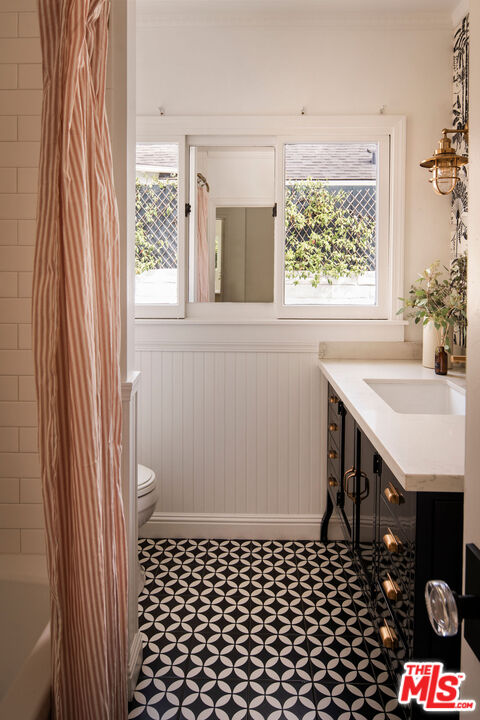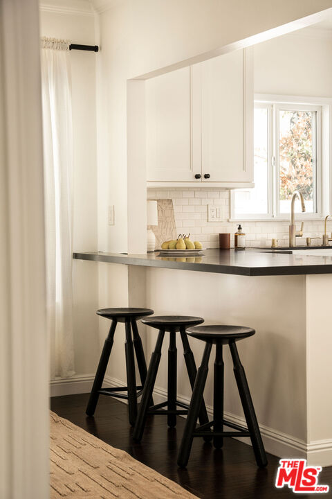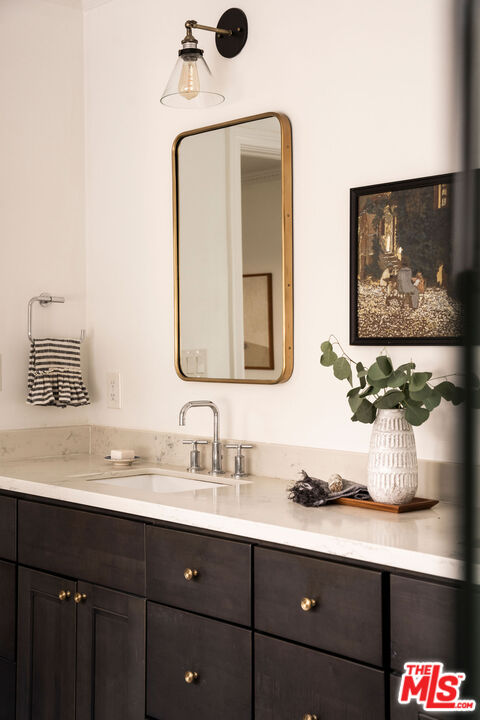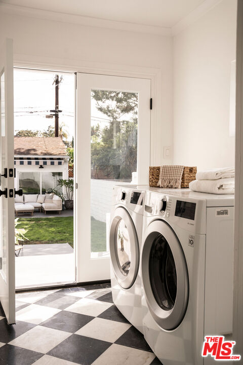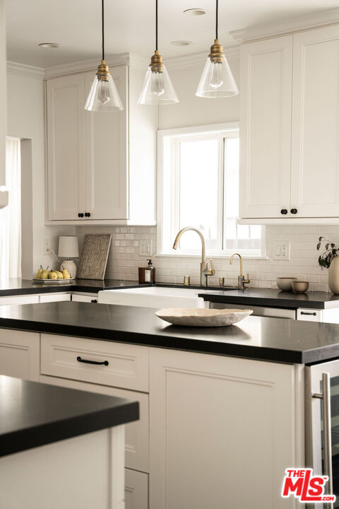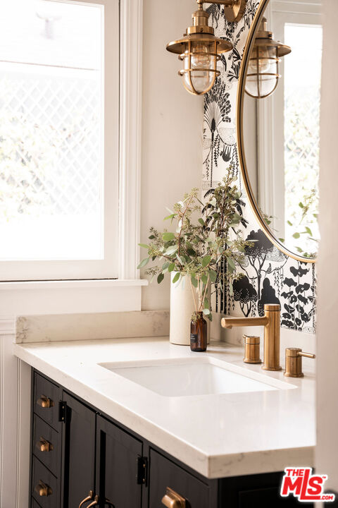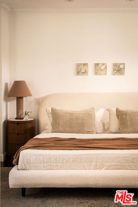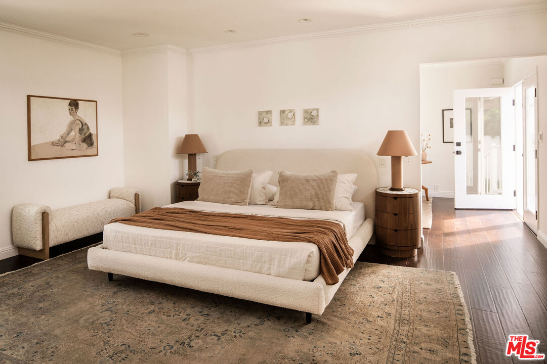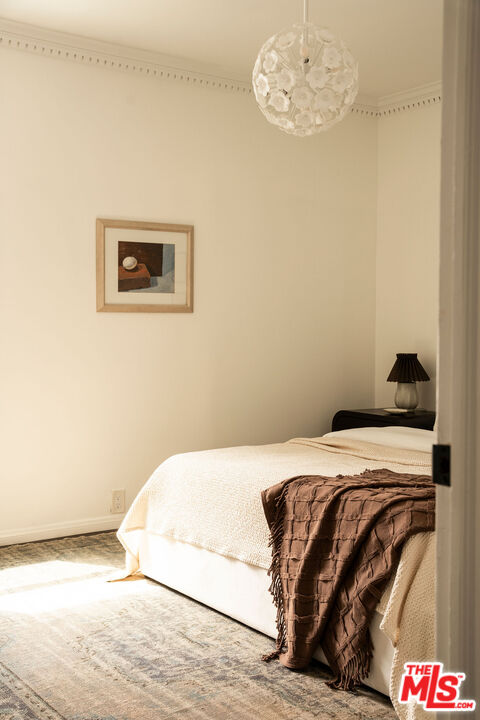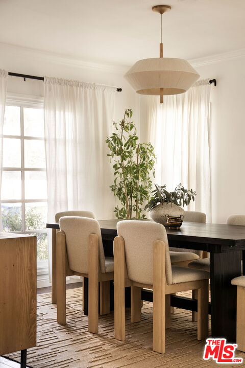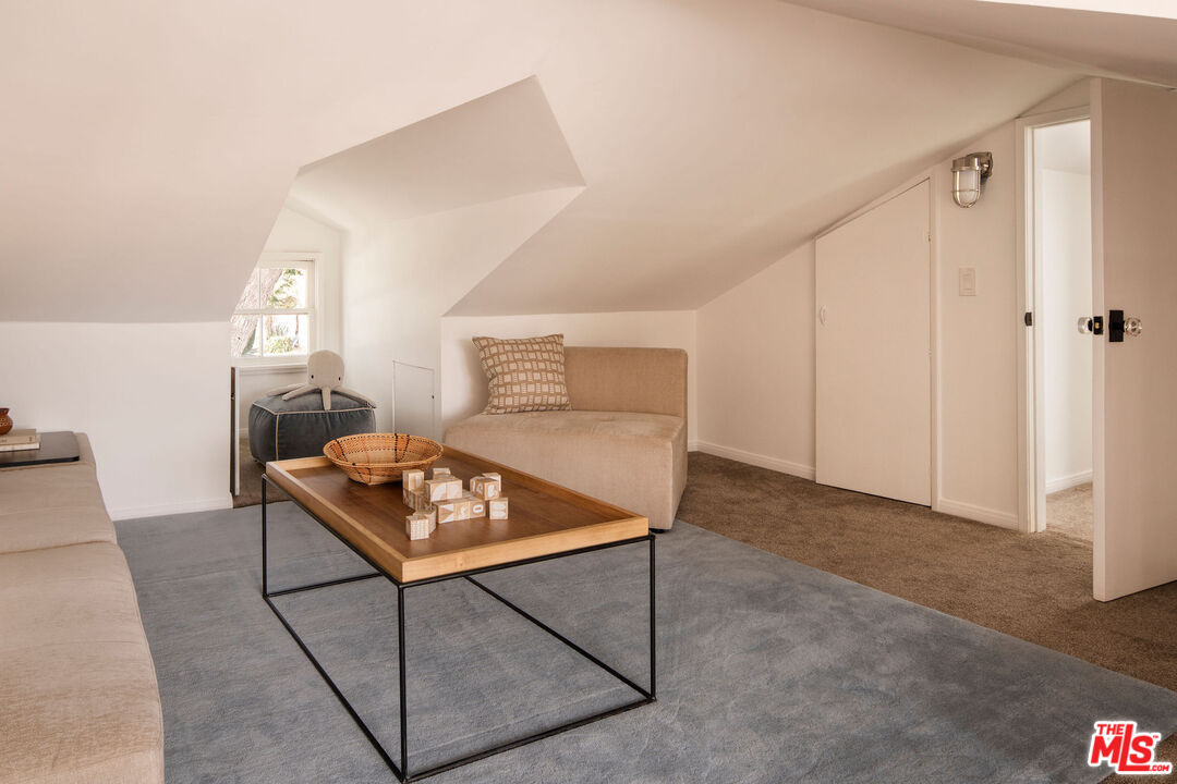In the heart of Larchmont Village, the property consists of a 3 bed, 3 bath, 2,125 sq. ft. home plus 335 sq. ft. poolside studio with kitchenette and bathroom, offering privacy, elevated design, and effortless indoor/outdoor living. Thoughtful details abound from the chef's kitchen with premium appliances, to a serene primary suite opening to the backyard, to an additional 615 sq. ft. loft space upstairs. Designed for entertaining and everyday ease, and situated just two blocks from Larchmont's best restaurants and bars, the magical home offers a sanctuary in one of LA's most sought-after neighborhoods. A picturesque walkway canopied by an oversized front oak tree leads to the front entry, where a long foyer introduces the home's inviting layout. The living room, anchored by a gorgeous fireplace, offers a warm gathering space, while the dining room flows effortlessly into the kitchen for seamless hosting. The kitchen is both functional and stylish, centered by a honed granite island, bar seating, and ample cabinetry for home storage. Premium appliances include a Wolf range and oven, a side-by-side Sub-Zero refrigerator and freezer, a Bosch dishwasher, an LG microwave, and a wine refrigerator. The kitchen opens to a beautiful private dining patio with an outdoor heater, perfect for entertaining and dining al fresco year-round. Down the hallway, find two spacious bedrooms sharing a full bath finished with a Restoration Hardware vanity. The primary suite sits at the rear of the home, a private retreat with a spa-like bath featuring a dual-sink vanity, soaking tub, and standing shower. A back room offers a flexible space that can be used as an office or converted to a large walk-in closet with French doors opening to the side yard. Backyard living feels like a private oasis - fully fenced with a grassy lawn, patio with an electric awning, and sparkling pool and spa. A detached studio enhances the setting with its own living area, full bathroom, kitchenette featuring Bertazzoni and Fisher & Paykel appliances, plus a full-sized refrigerator and freezer. Sliding doors open directly to the pool deck, making it ideal for guests or entertaining. Upgrades throughout the residence include newer engineered hardwood flooring, a dedicated 240V outlet for EV charging at the front of the home, Nest security cameras, and a newer Carrier HVAC system with condenser and all-new ductwork. Additional highlights feature a newer tankless water heater, upgraded electrical and plumbing systems, and newer windows, doors, and sliders throughout. Just moments from Larchmont Village, the home offers easy access to endless shops and eateries, including Great White, Cookbook, Larchmont Bungalow, Larchmont Wine & Cheese, Sam's Bagels, Go Get 'Em Tiger, Jeni's Ice Cream, and more. This private and serene residence blends small-town charm with city convenience, an elevated lifestyle in one of Los Angeles' most desirable neighborhoods.
