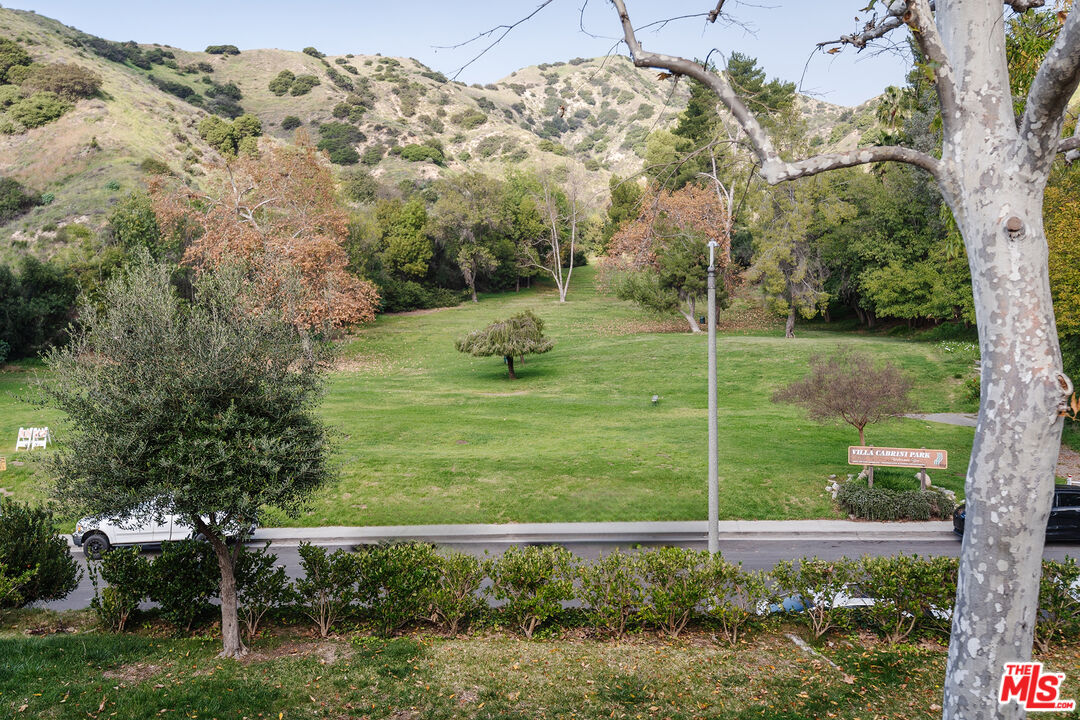 Perched at the top of the hill, this exceptional 2-bedroom, 2.5-bathroom residence occupies one of the most coveted and rarely available locations within The Cabrini Villas -- set apart from the majority of the community by its "front row" sweeping park, greenbelt, and mountain views. Tucked into the most sought-after pocket of the complex, this townhome offers serene canyon vistas from the living room and primary bedroom, as well as from the private patio and balcony, creating a seamless indoor-outdoor living experience. Inside, an open and airy layout perfect for entertaining awaits. The living room features sliding doors that open to a private patio -- ideal for quiet mornings with coffee, immersive nature views, and visits from families of deer in the park across the way. The living space flows effortlessly into the dining area and a gourmet kitchen with chic dark cabinetry and stainless steel appliances. A stylish half bath for guests completes the main level. Upstairs, two spacious bedrooms include a generously sized primary suite with a walk-in closet featuring customizable built-ins, a private balcony with scenic views of the verdant park and surrounding hills, and a spa-like ensuite bath with an indulgent whirlpool tub, while the second bedroom offers a spacious closet with built-ins and its own stylish ensuite bath. On the lower level, direct access to a private two-car garage is complemented by a versatile bonus room, ideal for a home office or additional storage. The Cabrini Villas community elevates everyday living with an impressive suite of resort-style amenities, including multiple pools and spas, tennis and pickleball courts, basketball and volleyball courts, a playground, clubhouse, 24/7 security, and HOA-covered Spectrum services with cable, high-speed WiFi, Disney+, and HBO Max. Ideally situated near tons of Burbank favorites such as Castaway Burbank, Charlie and Friends, and Tun Lahamajo, with easy access to outdoor adventures at Verdugo Mountain Park and La Tuna Canyon Park's scenic hiking trails. Adding to the convenience, Burbank Airport is just moments away for quick and effortless getaways -- making this a truly special place to call home.